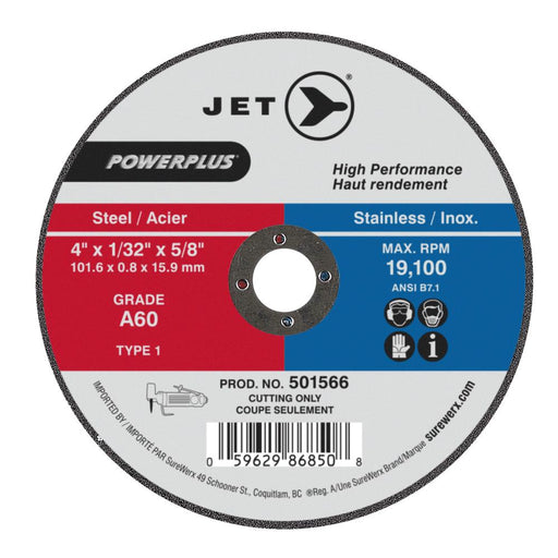 View full detailsSureWerx (545) 501072 JET 4 x 1/16 x 5/8 A60 POWERPLUS T1 Cut-Off Wheel