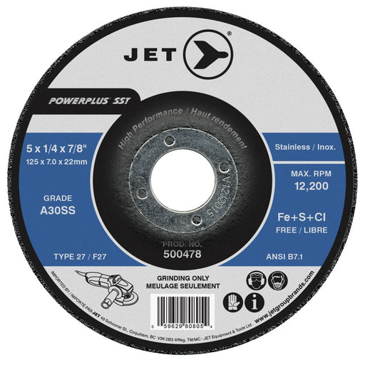 View full detailsSureWerx (545) 500478 JET 5 x 1/4 x 7/8 A30SS Powerplus SST T27 Grinding Wheel