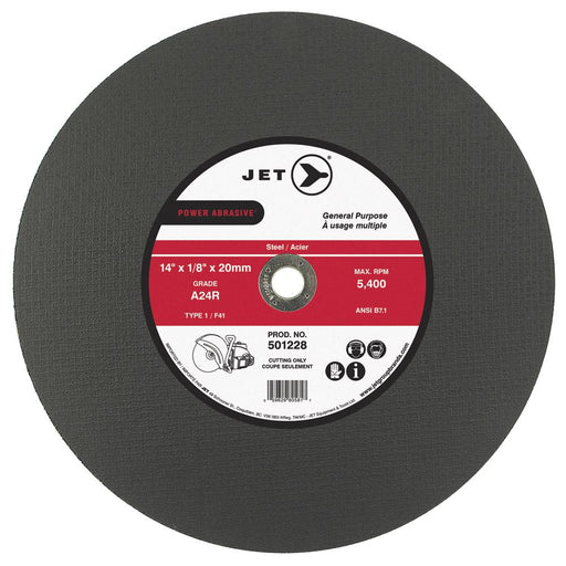 View full detailsSureWerx (545) 501228 JET 14 x 1/8 x 20mm A24R POWER ABRASIVE T1 Cut-Off Wheel