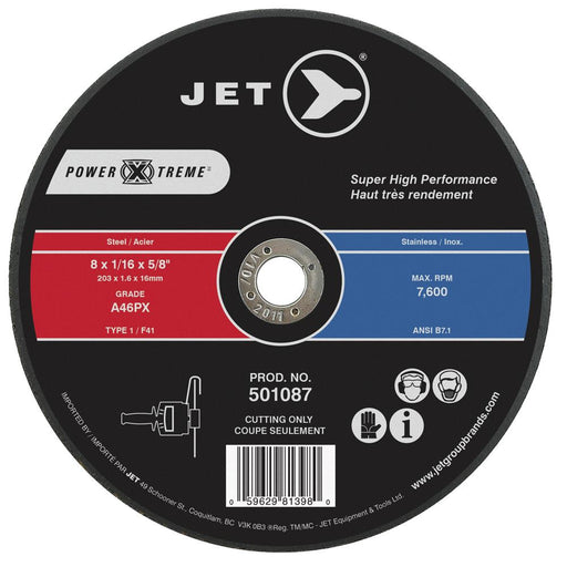 View full detailsSureWerx (545) 501087 JET 8 x 1/16 x 5/8 A46PX Power-Xtreme T1 Cut-Off Wheel