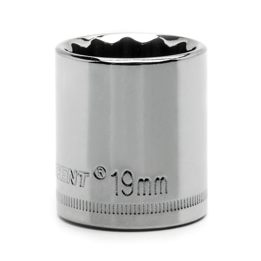 3/8" Drive 12 Point Standard Metric Socket 19mm. Off-Corner Load Feature Reduces Fastener Rounding. Crestoloy® Alloy Steel for Strength. Nickel Chr...