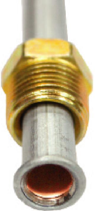 8 inch length with invert flares. 1/4" O.D. silver zinc tubing with spring armor cover. No.3003 (7/16". 24) tube nut on one end and No.3004 (7/16"....