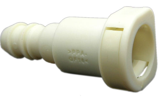 OE style quick connector. 3/8" line in, with connector barb for 5/16"/8mm nylon tubing. Use with 2962-25 nylon tubing. Press tool required for inst...