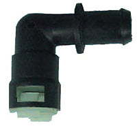 EZ Fit Push In Quick Connector (No Tools Required). 5/16"(8mm) x 90° to 1/4" nylon fuel line (2997-25). 2940 clamp included. Press fit by hand.