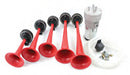 Musical Horns - La Cucaracha Air Powered 138 dB @ 4” Loud sounding, popular tunes attract immediate attention. The horns are made high durability plastic for years of dependable service. The Musical Horns will fit most 12 volt vehicle applications. Kits comes with a powerful 12 volt maintenance free compressor, 4 or 5 trumpet horns, relay, tubing, and mounting hardware.