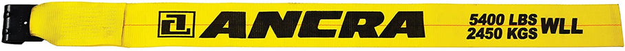 Ancra 43795-10-20 Flat Hook Winch Strap. 4-Inch by 20-Feet. Yellow polyester webbing, Heavy-duty, weather resistant latex coating. Meets DOT specifications and tested for strength and durability. Able to endure the demanding conditions of flatbed operations. 5400 lbs WLL (2450 kgs). Meets or exceeds WSTDA T-1 Recommended Standard Specifications for synthetic web tie downs.