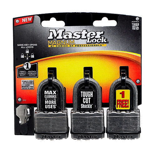 Master Lock Magnetic Laminated Steel Padlock, M5BLCTRILFHC. tough-Cut octagonal boron-carbide shackle is 50 percent harder than hardened steel. Dua...