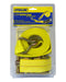 Retail Packaged. Pack of 1. Size: 2”x 15’, Working Load Limit: 1, 300 lbs., Ultimate Load Limit: 4,000 lbs., Colour: Yellow, Webbing: Polyester Material: Polyester. Working Load Limit: 1, 300 lbs. Ultimate Load Limit: 4,000 lbs. Hooks: J-Hooks. Colour: Yellow. Size: 2”x 15’.
