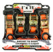 4 Pk. 1"x15' 2000 lb Ratcheting Tie Downs Orange.