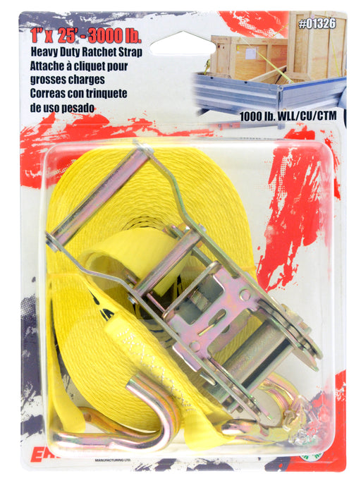 Erickson (447) 01326 1"x 25' 3000 lb Ratchet Strap Yellow