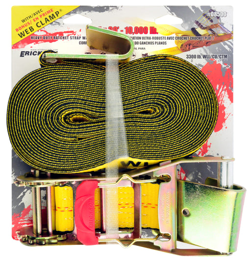 View full detailsErickson (447) 08500 2"x30' 10,000 lb Long Handle Ratchet w/ Flat Hks w/ Bonus Web Clamp