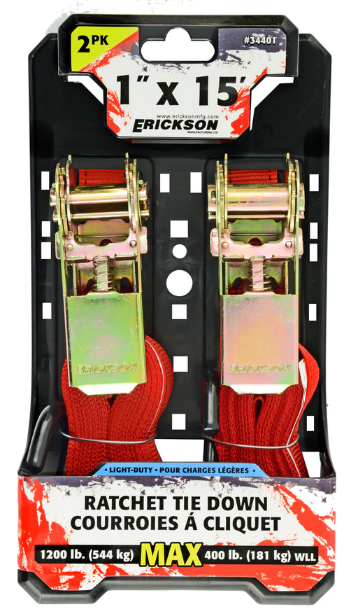 View full detailsErickson (447) 34401 2 Pk. 1"x15' 1200 lb Ratcheting Tie Downs Red