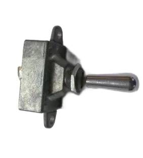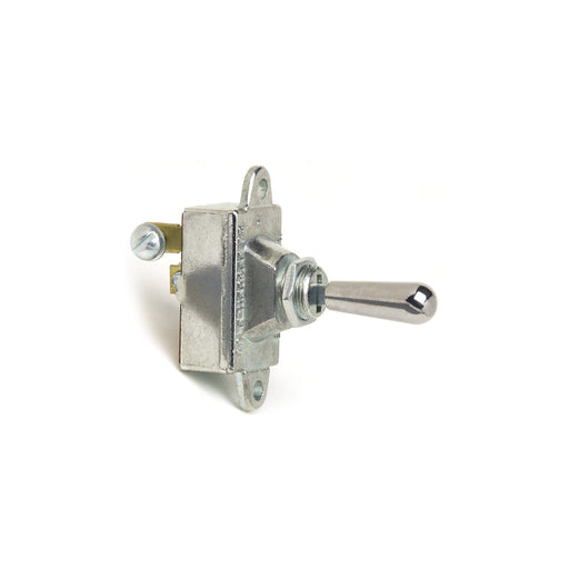 Heavy-duty SPST grounding toggle switch. Maintained ON–OFF. 25A @ 12 V DC. Nickel-plated brass mounting stem (15/32" thread), plated steel cap, pla...