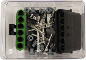 6 Cavity 20-18 AWG Weather Pack Kit. Amp: 20A. Gauge: 20-18 AWG. Material: Housing: Polyamide (Nylon)Seal: SiliconeTerminal: Tin Plated Brass. Temp...