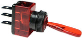 Illuminated SPST Toggle Switch. Amp: 16A. Colour: Red. Connection: 1/4" Blade Terminals. Function: SPST (Single Pole, Single Throw).