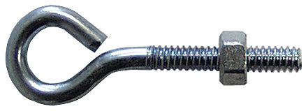 Wire Formed. Supplied with Nut. Zinc plated finish. Wire Diameter: 3/16”, Thread Length: 1-5/8”, Usable Length: 1-3/4”, Overall Length: 2-1/2”, Eye...