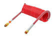 11-317. 15’, red (emergency) coil only. Heavy Duty Coiled Air. Heavy duty coiled air built avoid kinks and damage. Includes thread seal for secure connection to gladhand. Single piece trailer side and three-piece swivel tractor side fittings. Plated steel spring for added tubing protection. Remains flexible at -40°F (-40°C). 1/2″ NPTF. Meets SAE J844 and J1131 specifications. Meets DOT 49 CFR FMVSS 571.106 specifications. Meets DOT 49 CFR FMVSS 393.45 specifications. As a recommended practice, use a tracker bar spring kit or pogo stick to support cable assemblies with longer leads.