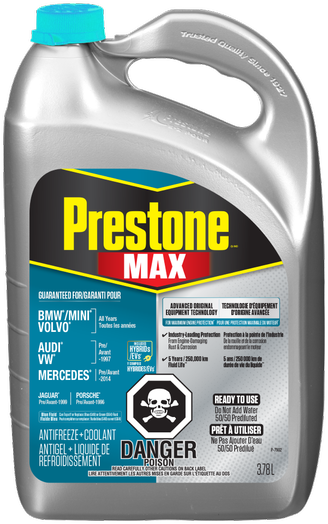 Prestone 50/50 Prediluted Antifreeze/Coolant for European vehicles is specially formulated for use in Volkswagen®, Audi®, Mercedes®, BMW®/MINI®, &a...