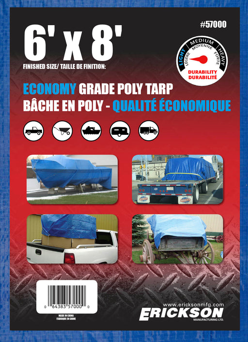 View full detailsErickson (447) 57000 6'x8' Blue Economy Poly Tarp