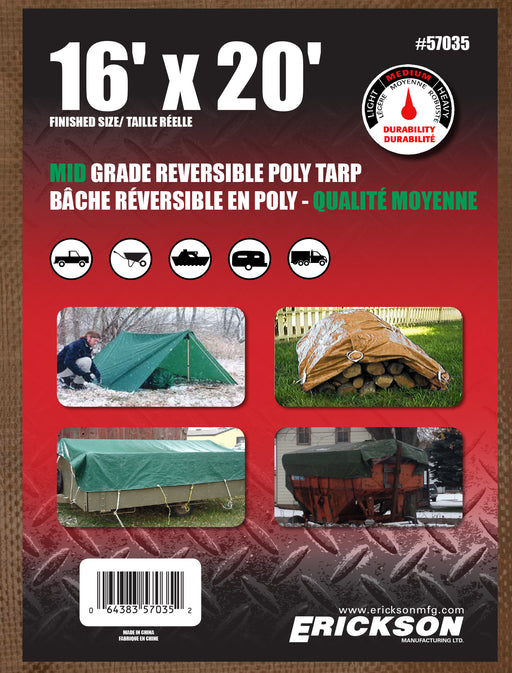 View full detailsErickson (447) 57035 16'x20' Reversible Mid Grade Poly Tarp Brown/Green