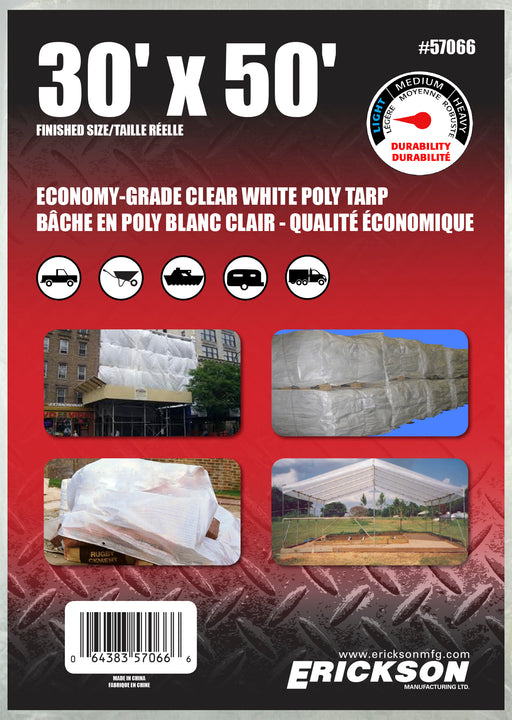 View full detailsErickson (447) 57066 30' x 50' Clear White Economy Poly Tarp
