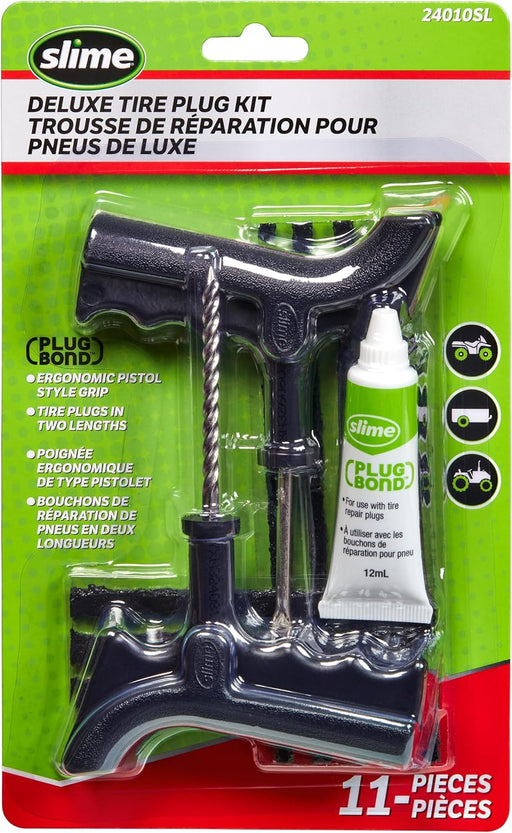 The Slime 11-piece Deluxe Tire Plug Kit includes everything you need to plug up those nasty tire punctures. Use the ergonomic, pistol-grip handle r...