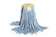 Synthetic Wet Mop Narrow Band 24oz Cut End Blue. Excellent absorbency and release characteristics. Made from a high-quality synthetic yarn blend. True weight mop. Reinforced stitching in band – 4 lines of Quad Core stitching for maximum strength. Can withstand harsh chemicals. Not Launderable.