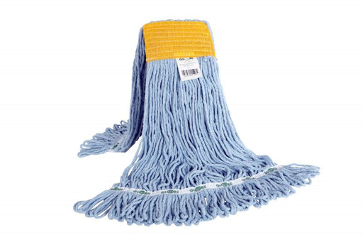 Synthetic Looped End Wet Mop Narrow Band Blue 20oz. Made from Anti-Shrink synthetic blended yarns that can withstand repeated launderings. Looped e...
