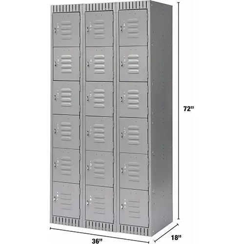 MPN: CL-D-3-12X18X72_A124Specifications No. of Tiers 2 Bank of 3 Overall Width 36" Overall Depth 18" Overall Height 72" Door Height 32" Door Width ...
