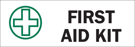 Sign: Polyester, Black/Green On White, 3.5 In H X 10 In W, First Aid Kit. Weathers up to 8 years outdoors, even longer indoors, and withstands wide...