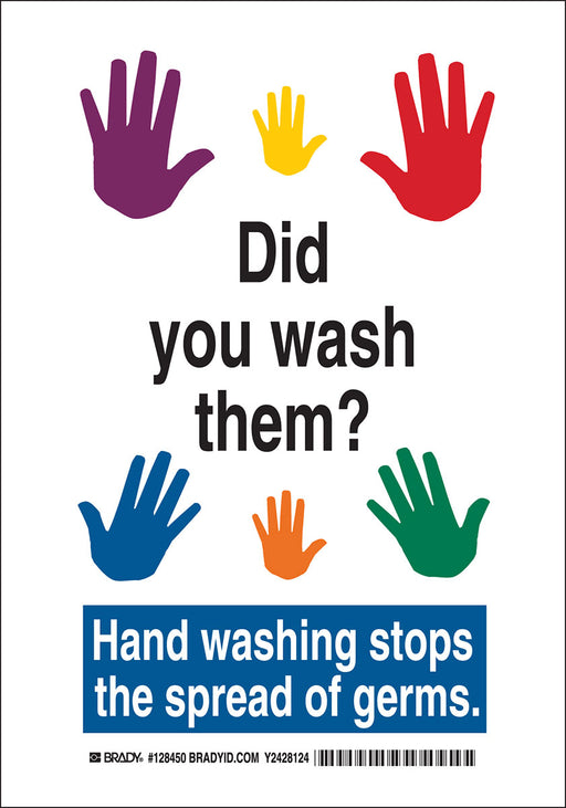 DID YOU WASH THEM? Hand Washing Stops The Spread Of Germs Sign. Header: DID YOU WASH THEM?. Material Number: B-401 (View Technical Data Sheet). Col...