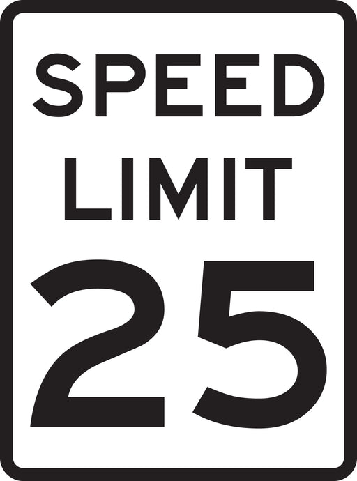 Sign: Fiberglass, Black On White, 24 In H X 18 In W, Speed Limit 25. Graphics are permanently embedded within the sign panel, allowing for use in t...