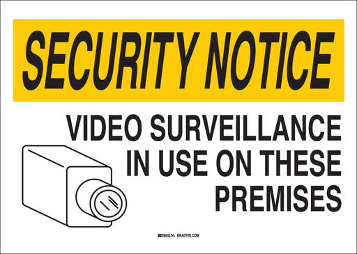 Sign: Plastic, Black/Yellow On White, 14 In H X 20 In W, Security Notice: Video Surveillance In Use On These Premises. High impact polystyrene with...