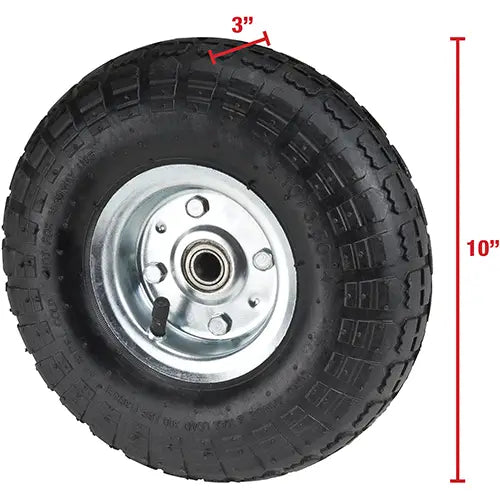 Specifications Wheel Material Pneumatic Wheel Size 10" H x 3" W Weight 3.11 lbs. Manufacturer's Warranty 1 Year Limited