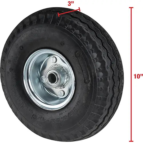 Specifications Wheel Material Pneumatic Wheel Size 10" H x 3" W Weight 3.55 lbs. Manufacturer's Warranty 1 Year Limited