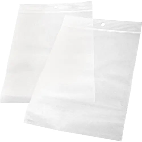 Hang-holes allow users to hang on hooks or pegs Zippered opening allows for easy opening and resealing Accepted for use in Canadian food processin...