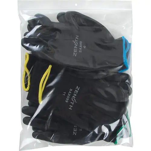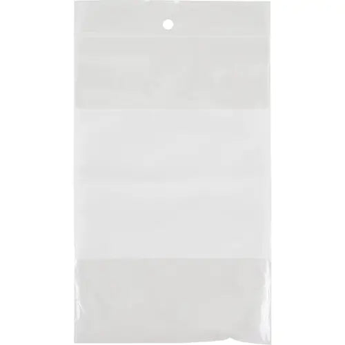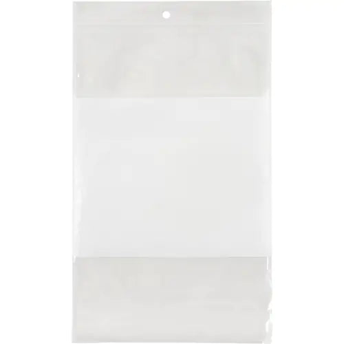 White block area - use marker, pen or pencil to identify label or contents Zippered opening 1000 bags per case Specifications Type Reclosable Leng...