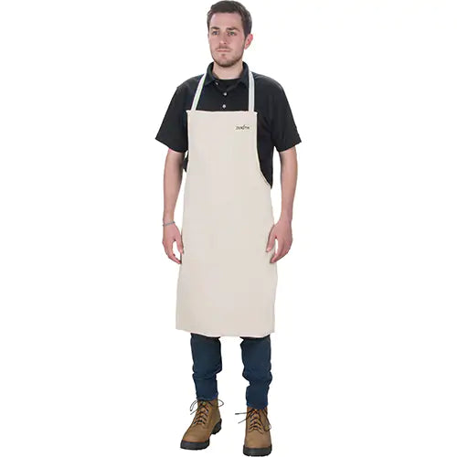 Bib style 100% cotton Cotton straps for adjustability Accepted for use in Canadian food processing facilities Specifications Material Cotton Lengt...