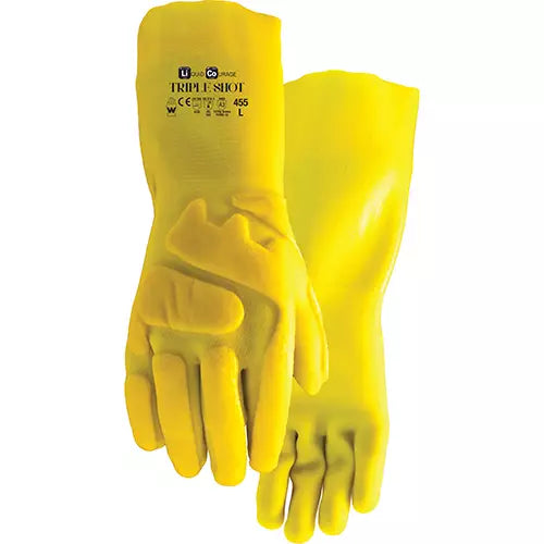 MPN: 455-X Nylon/glass liner is cut resistant offering superior protection High-visibility yellow fully coated PVC with sandy finish provides chemi...