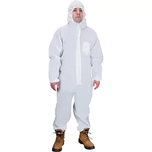 Polypropylene permits breathability and comfort Offers protection against non-hazardous and non-toxic liquids, dust and particles Economical dispo...