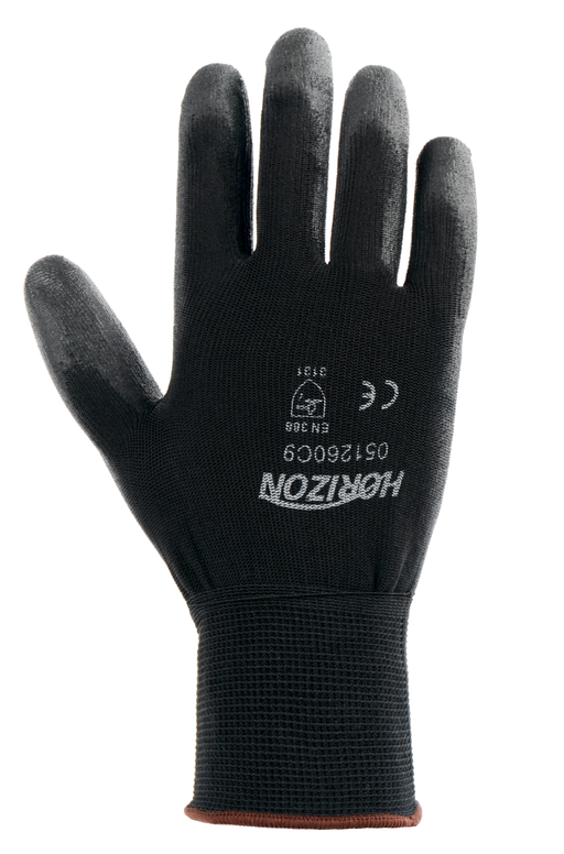 Horizon's Polyurethane coated palm for excellent dexterity, lightweight 21G cut resistant liner, A3 cut protection, I-touch compatible, L Features-...