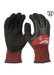 Nitrile Dipped Cut 3 Resistant Winter Insulated Work Gloves. Milwaukee Tools Cut Level 3 Winter Insulated gloves are designed to provide ultimate warmth, allday comfort, and best in class dexterity for handling small objects. Milwaukee Tools winter gloves utilize a warm acrylic terry liner to maintain warmth in the coldest of conditions. Additionally, the gloves have a secure dual liner to comfortably keep your hands warm without the liner separating after extended use on the jobsite. These gloves are constructed with a 3/4 double dipped latex microfinish for water resistance to provide best in class grip performance in the coldest of temperatures. Lastly, these gloves feature a 15 gauge nylon outer liner resulting in high dexterity fingertips and breathability. ANSI 3 EN 511: 02X EN 388: 2442C. High dexterity 15-Gauge nylon and high performance polyethylene outer liner for protection. Sandy latex finish for grip performance. 7-Gauge inner liner for warmth. Breathable and comfortable glove design..