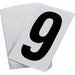 - Numbers are 3 1/2" high printed black on clear Mylar ™ or black on white vinyl, with permanent adhesive