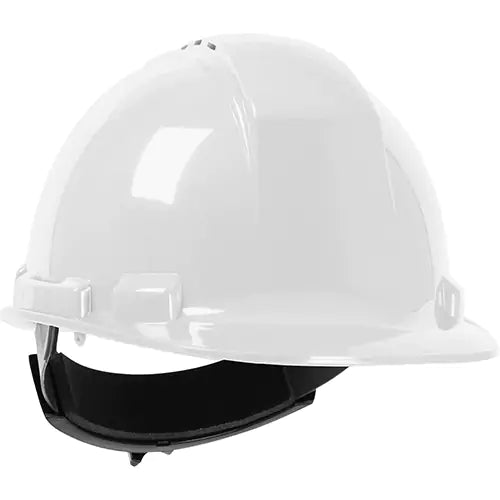 MPN: HP542R-04Hardhat with HDPE shell with rain trough, foam liner, 4-point nylon suspension, "Sure-Lock" ratchet adjustment, and 4 anchor points f...