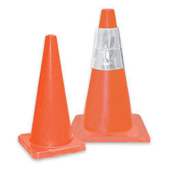 Durable PVC material cone with black base. Slip resistant Interlocking base. 6” Wide high intensity reflective tape. Highly visible bright fluoresc...