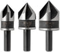 Irwin Tools 1877720 Countersink Drill Bit, Black Oxide, 3-Piece. 1/2, 5/8, 3/4. Precision-Ground 82 tip for countersinking into most machinable metals, wood or plastic. Made from industrial grade high speed steel for increased durability. Includes a black oxide finish for added corrosion resistance. Five flute design reduces vibration for smoother drilling and extended life. 1/4" round shank fits all handheld and stationary drills.