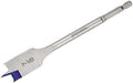 Speedbor® Blue-Groove™ Standard Length Woodboring Spade Bit. 7/8" x 6". Blue-Groove point and cutting edge for faster chip removal - 4x faster than standard spade bits. Double cutting spurs scribe the outside of the hole reducing breakout. 10% larger shank for added durability. Grooved hex shank prevents slipping in drill chuck or bit extension. Fits all standard quick change chucks. Diameter: 7/8". Shank Size: 1/4" Quick-Change. Length: 6".