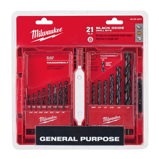 View full detailsMilwaukee (366) 48-89-2801 Thunderbolt® Black Oxide Drill Bit Set (21 PC)