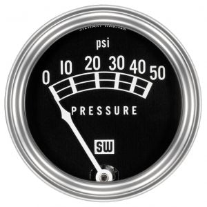 Stewart Warner Standard Oil Pressure Gauge: P/N 82207 - Type: Mechanical - Size: 2-1/32” - Scale: 0-50 PSI - Use tubing kit P/N 82553-F (6’) or 366...