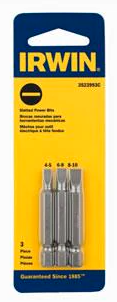 3523993C Slotted Power Bit Set - 4-5, 6-8 & 8-10 x 1-15/16" OAL - 3-Pc. Carded. Standard Features: Used for common round, oval, and flat head f...